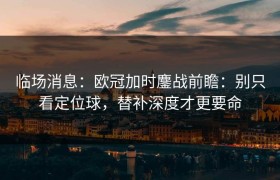 临场消息:欧冠加时鏖战前瞻:别只看定位球,替补深度才更要命 欧冠淘汰赛的加时阶段,总能把赛场的每一分...