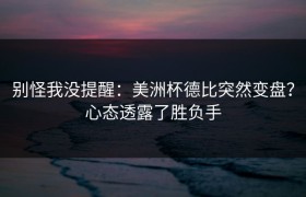 别怪我没提醒:美洲杯德比突然变盘?心态透露了胜负手