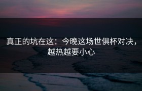 真正的坑在这:今晚这场世俱杯对决,越热越要小心 摘要:今晚的世俱杯对决,悬念不仅在球技层面,更在于热...