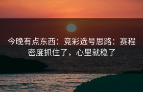 今晚有点东西:竞彩选号思路:赛程密度抓住了,心里就稳了 今晚的竞彩,很多人把注意力放在技战术分析和对...